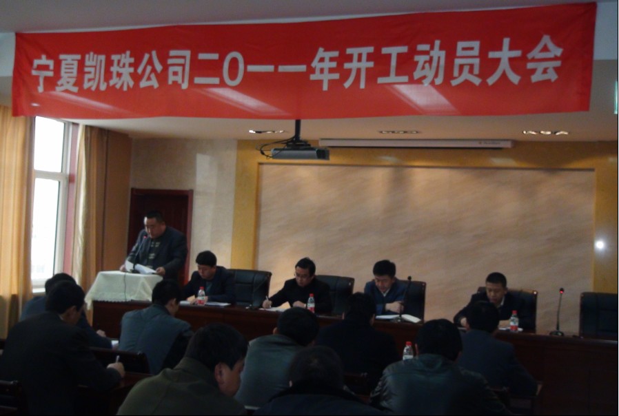 2011年春節(jié)后,寧夏凱珠召開了開工動(dòng)員大會(huì)。會(huì)議對(duì)過(guò)去一年的工作進(jìn)行了總結(jié),更對(duì)新的一年工作提出展望和目標(biāo)。會(huì)議使凱珠振奮精神 鼓足干勁 同心同德 再創(chuàng)佳績(jī)?。?!